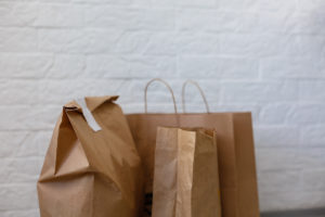 Assortment of food delivery containers on table
